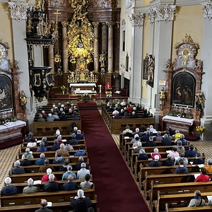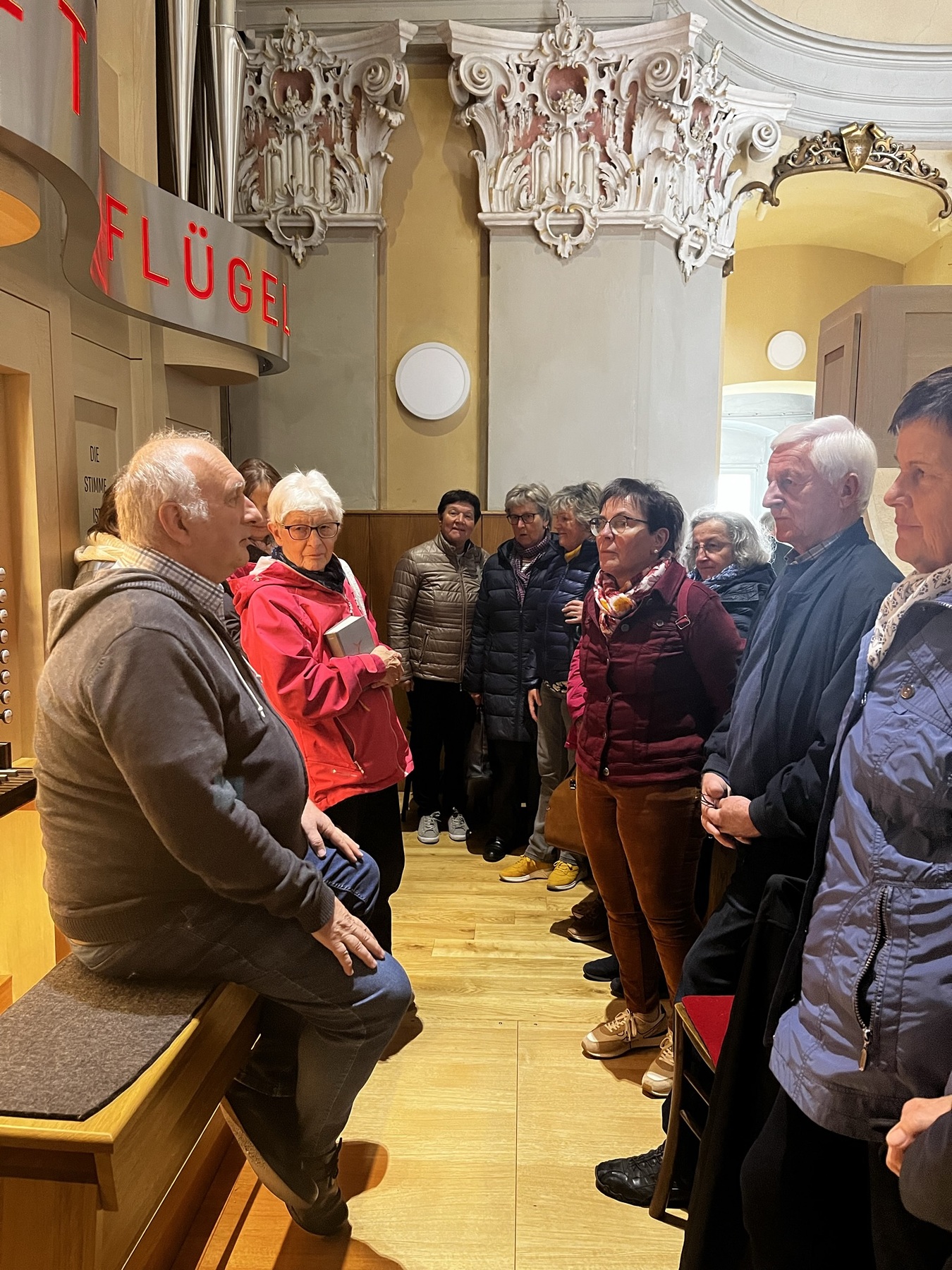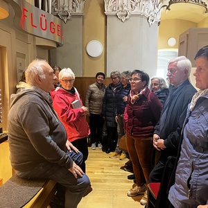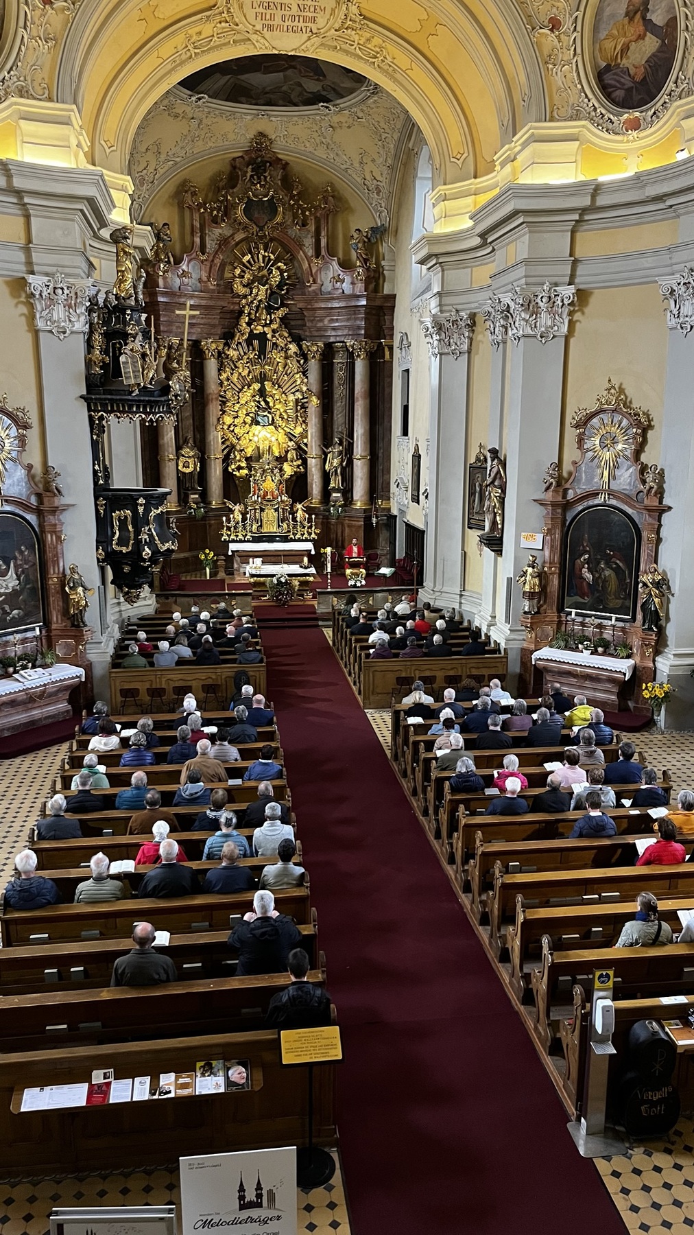 Am Nachmittag fuhren die Mesnerinnen und Mesner auf den Pöstlingberg und konnten die neu gestaltete Orgel in der Wallfahrtsbasilika bewundern, die im März gesegnet wurde. Domorganist Wolfgang Kreuzhuber kennt das Instrument in allen seinen Facetten und stellte sich den Fragen der Interessierten. Im Anschluss zelebrierte der Geistliche Assistent der Mesner Gemeinschaft Josef Keplinger die heilige Messe. In seiner Predigt vermittelte er ein sehr anschauliches Bild des Dichters und Mystikers Angelus Silesius: Gott ist ein Organist – das Orgelwerk mit den Manualen, Pedalen, Registern und den vielen verschiedenen Pfeifen ist die Kirche, das sind wir.