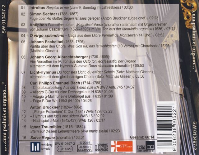 Ich freue mich über das Zustandekommen dieser musikalischen Dokumentation im Gedenken an den großen Ansfeldner Anton Bruckner. Beim Gottesdienst am Sonntag, 30. Oktober 2016 um 9:00 Uhr sang die Schola Floriana und Andreas Etlinger spielte die Orgel. Die CD wurde an diesem Sonntag präsentiert und zum Kauf angeboten.