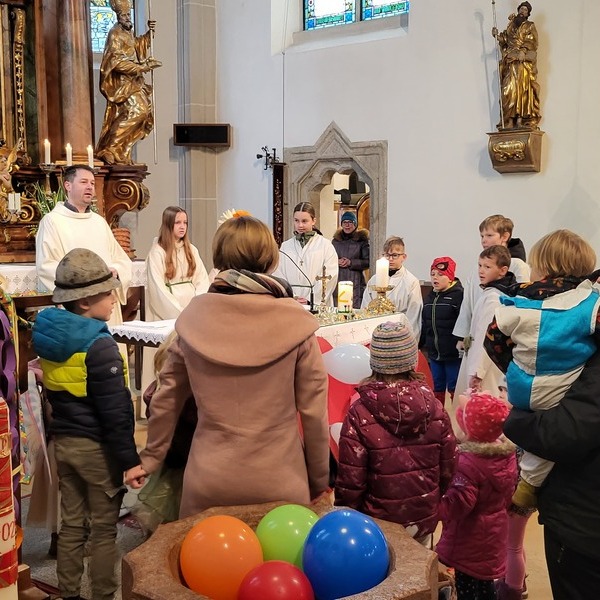 Im Evangeliumstext lädt Jesus dazu ein nicht zu richten, nicht zu urteilen und einander zu vergeben. Er sagt uns, wenn wir barmherzig und mit offenen Herzen auf andere zugehen, ohne dabei eine Gegenleistung zu erwarten, dann sind wir nah dran so zu leben wie er uns das vorgelebt hat. Danke an alle Kinder die dabei waren und fleißig mitmusiziert und gesungen haben! Und auch an alle Omas, Opas, Mamas und Papas, die die Kinder dabei begleitet haben!