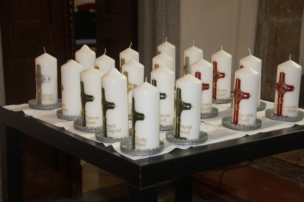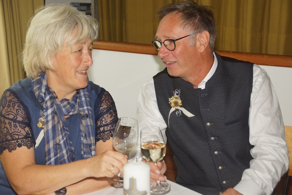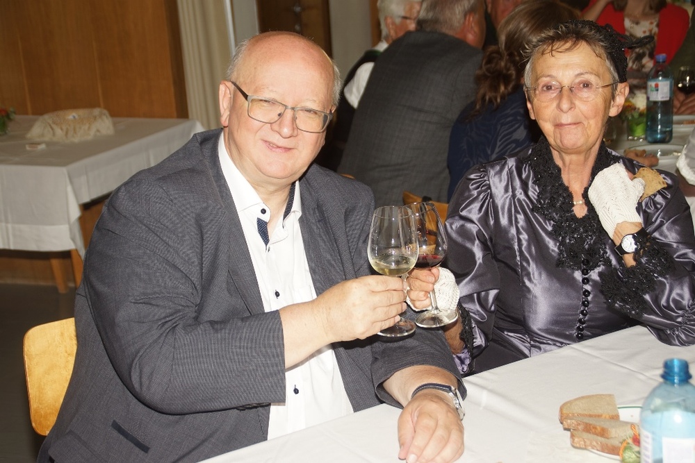 Im Anschluss an die Messe wurden die Jubilierenden von den Goldhaubenfrauen in den Pfarrhof zum gemütlichen Ausklang bei einem Glaserl Wein eingeladen. Jedes Paar erhielt eine Kerze als Andenken.